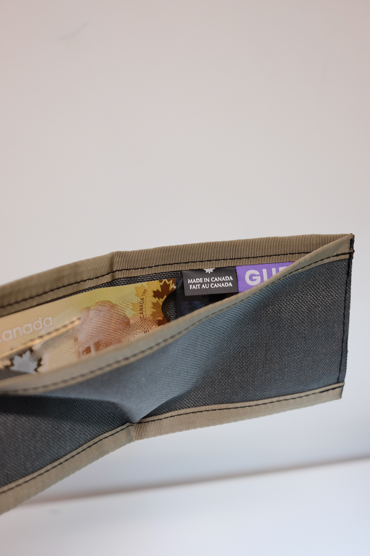 Bills section: Full-width bifold pocket for cash, receipts, or notes